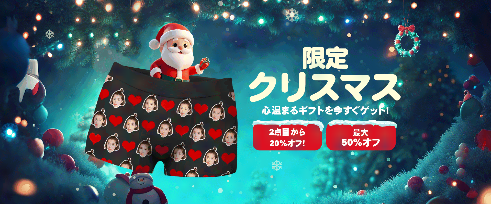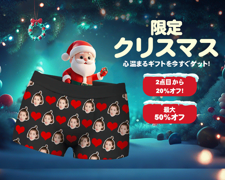 カスタムフェイスボクサー彼氏へのクリスマスプレゼントにぴったり!写真入りアンダーウェア -