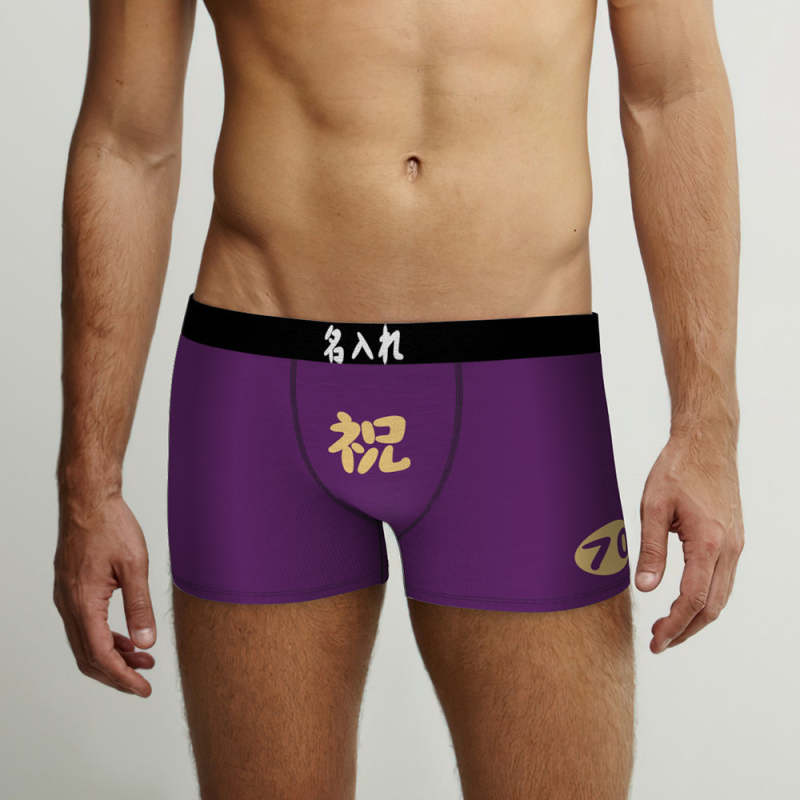 カスタム名前ボクサーパンツ-テキスト入れ可能な誕生日下着70歳お祝い古希ボクサーギフト
