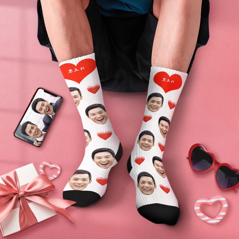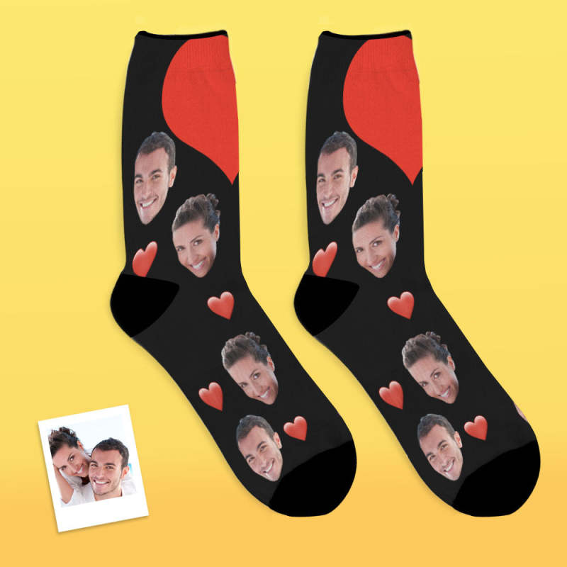同性カップルプレゼント-カスタムフォトソックス-写真入り名入れ可能なオリジナル靴下ハートマークの絵文字