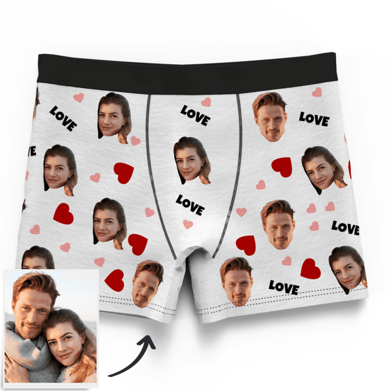同性カップルプレゼント-カスタムフォトボクサーパンツ-写真入り可能なオリジナル下着Love印-カップルスタイル