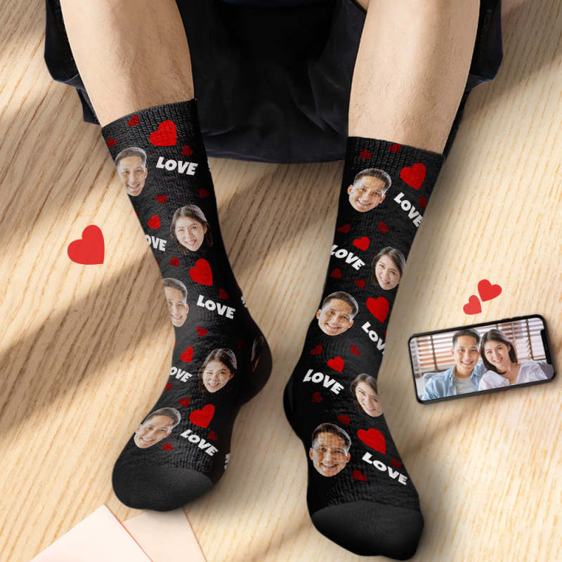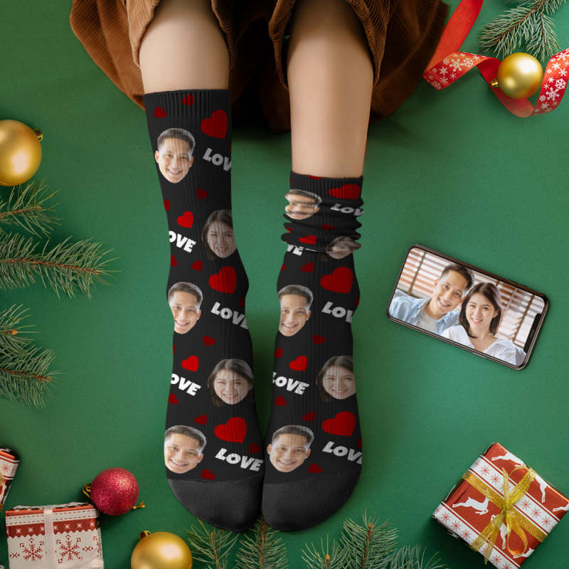 家族へのカスタムフェイスソックスパーソナライズされたクリスマスフォトソックスギフト-愛