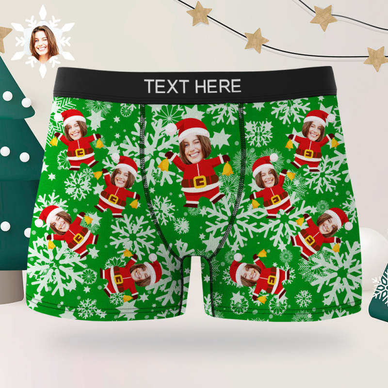 クリスマス男性用のパンツカスタム写真ボクサープレゼント面白いクリスマスパンツ-雪花サンタ