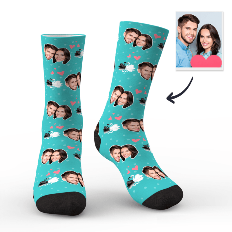 カスタムフォトソックス-写真入り可能なオリジナル靴下カップル写真入りソックス-カップルスタイル白鳥