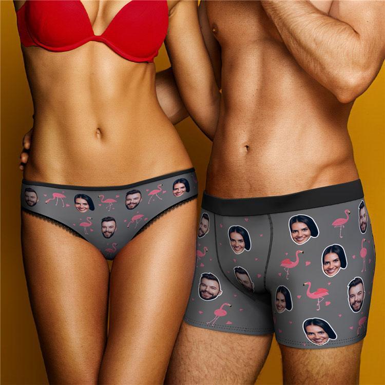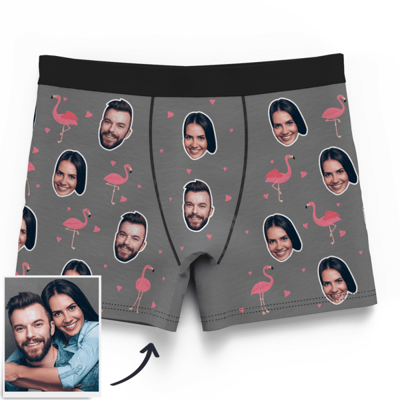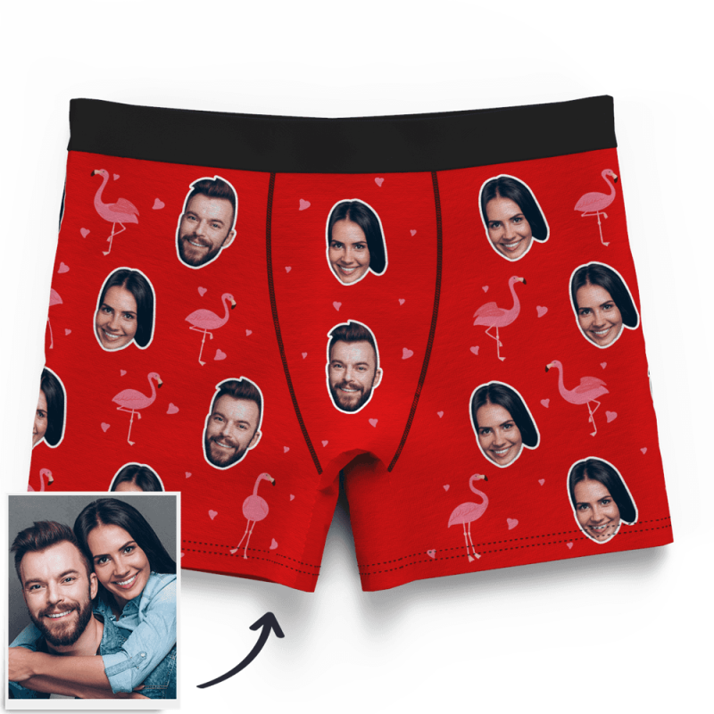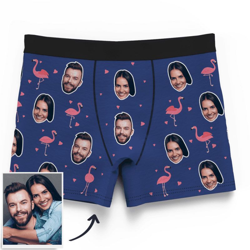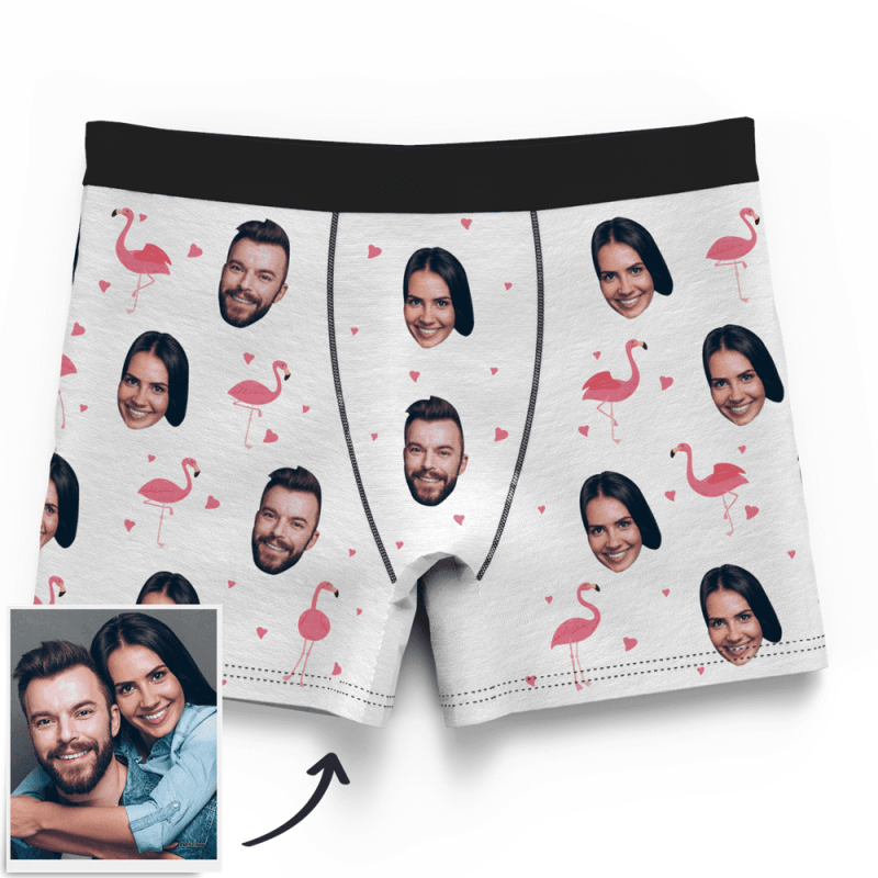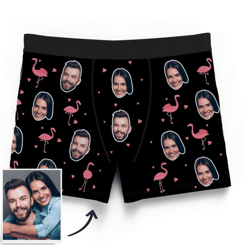カスタムフォトボクサーパンツ-写真入り可能なオリジナル下着カップル写真入りボクサーパンツ-カップルスタイルフラミンゴ