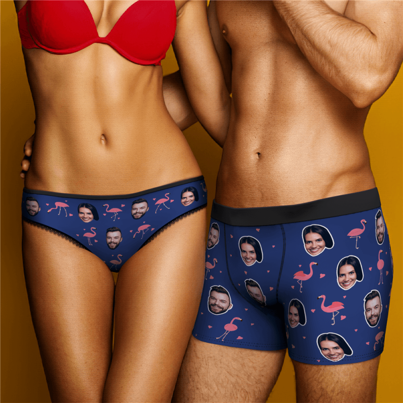 カスタムフォトパンティ-写真入り可能なオリジナル下着カップル写真入りパンティ-カップルスタイルフラミンゴ