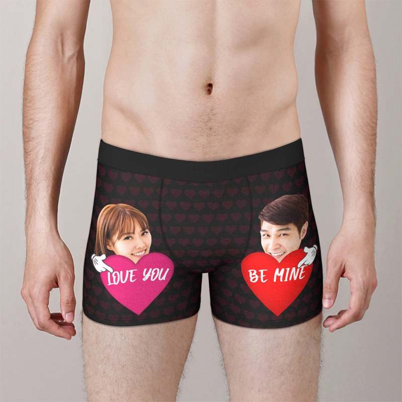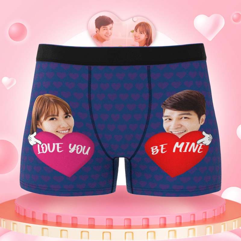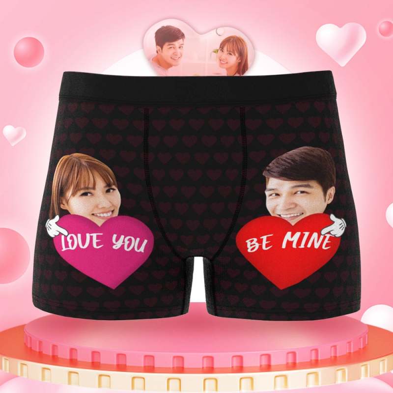 カスタムフォトボクサーパンツ-写真2枚とテキスト入り可能なハート柄のオリジナル下着バレンタインプレゼント