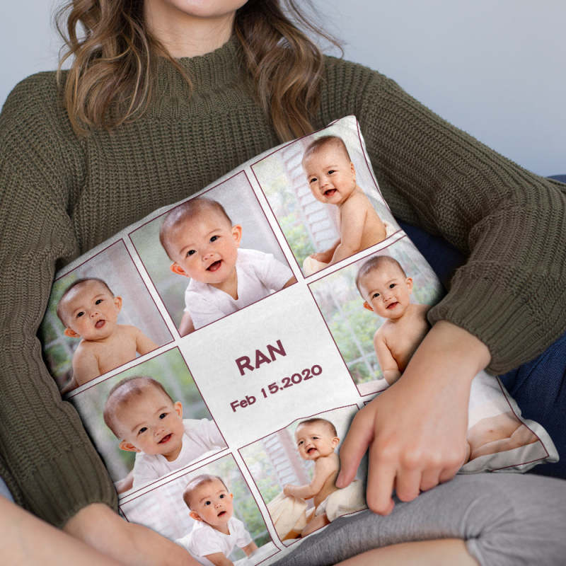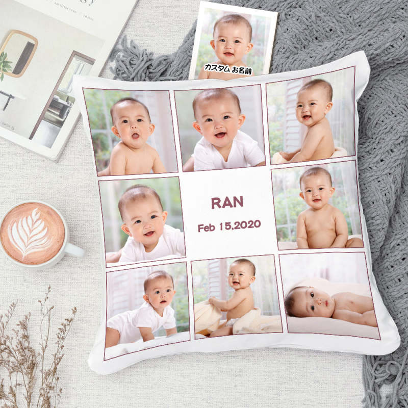 カスタム写真クッション-写真8枚とテキスト入れ可能な抱き枕ギフト家族へ
