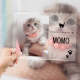 カスタムフォトアクリル製写真立て‐ネコの写真と名前とメッセージ入れ可能なメモリーを込めった卓上ペットグッズプラーク-肉球柄横向き