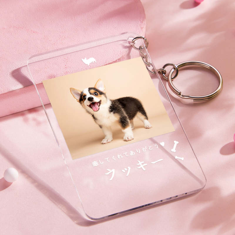 -お好きな写真と名前とメッセージをアップロードして、世界に一つだけのオリジナルフォトフレームキーホルダを作ろう!このキーホルダーはどこへ行っても持ち運べるエレガントでキーストリング、携帯電話、またはバッグにかけることができ、あなたのペットがいつもそばにいます。