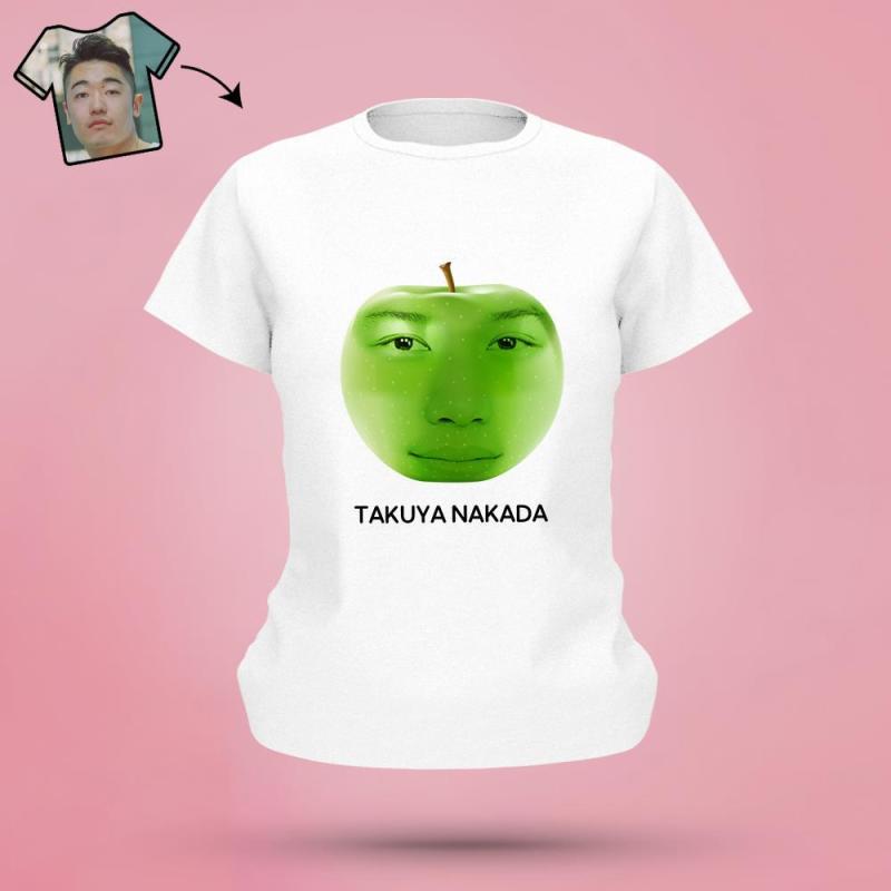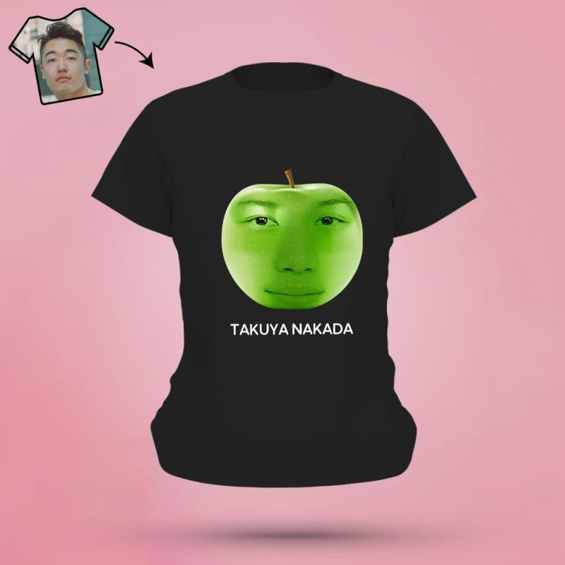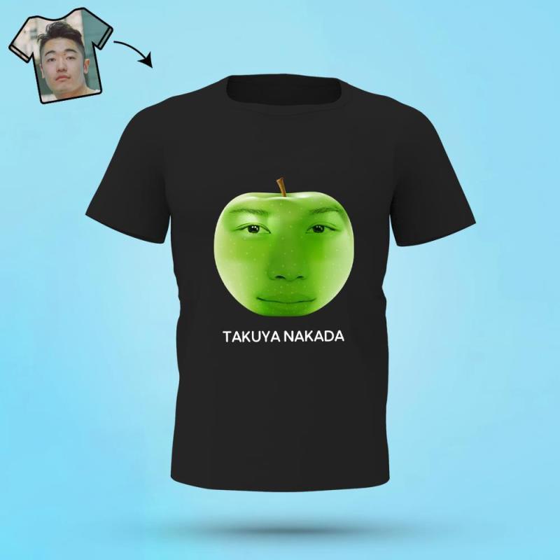 カスタムりんご柄のフェイスTシャツ - パーソナライズされた写真T-SHIRT - 写真と名前入れ可能な面白いプレゼント黒