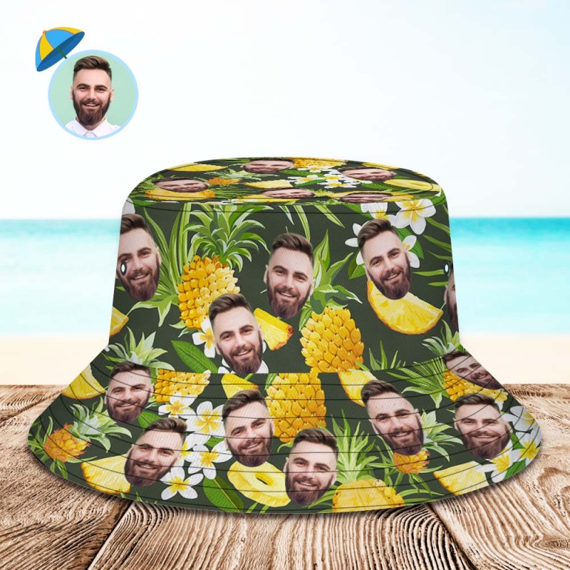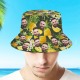 カスタムバケットハット-写真入れ可能な男女兼用日よけ帽子プレゼント-ハワイアンパイナップル柄