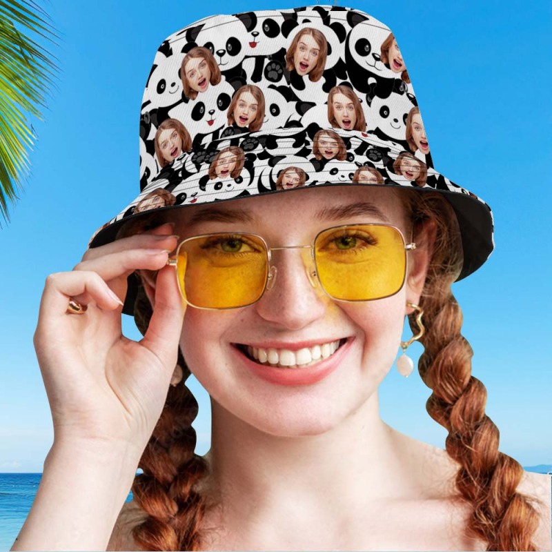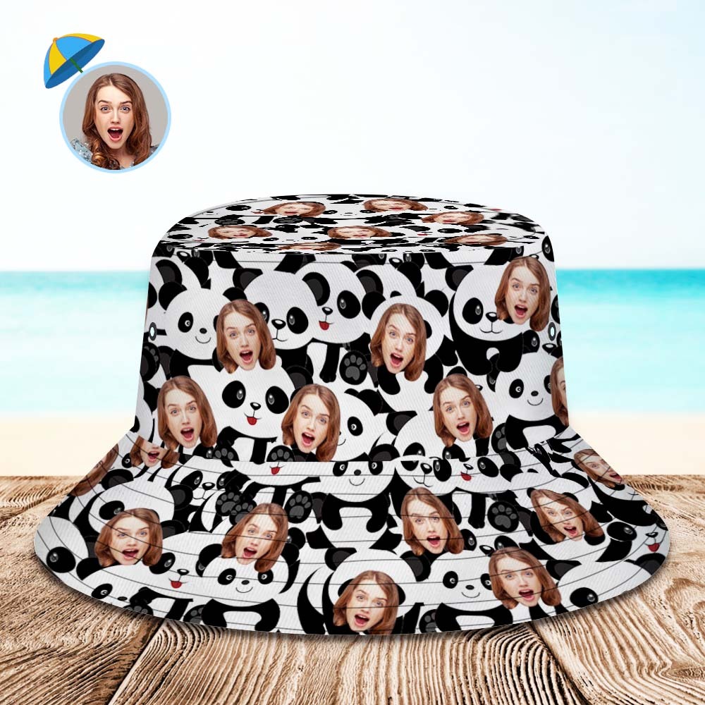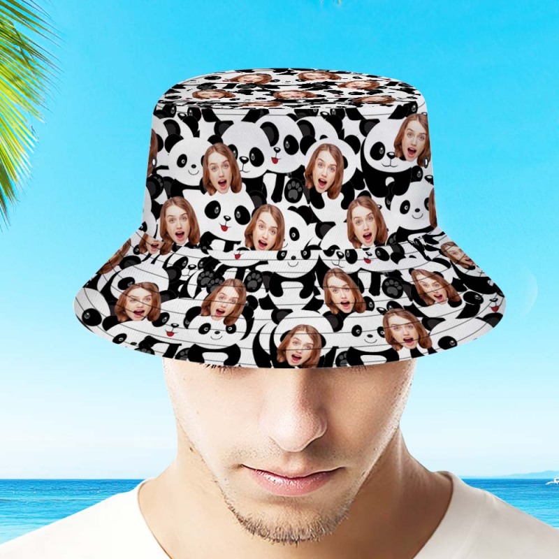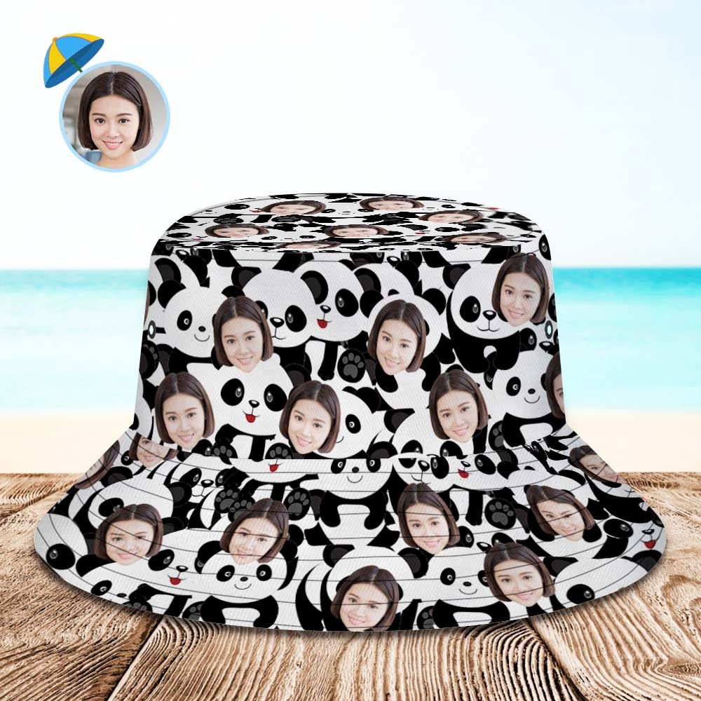 カスタムバケットハット-写真入れ可能な男女兼用日よけ帽子プレゼント-可愛いパンダ柄