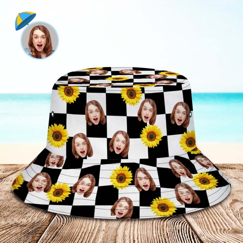 カスタムバケットハット-写真入れ可能な男女兼用日よけ帽子プレゼント-格子模様
