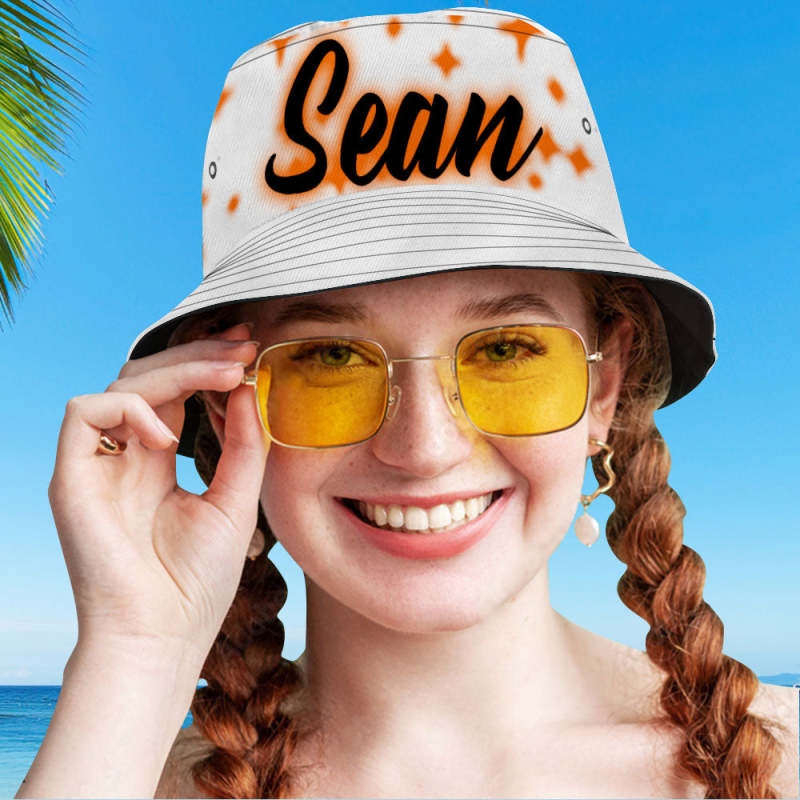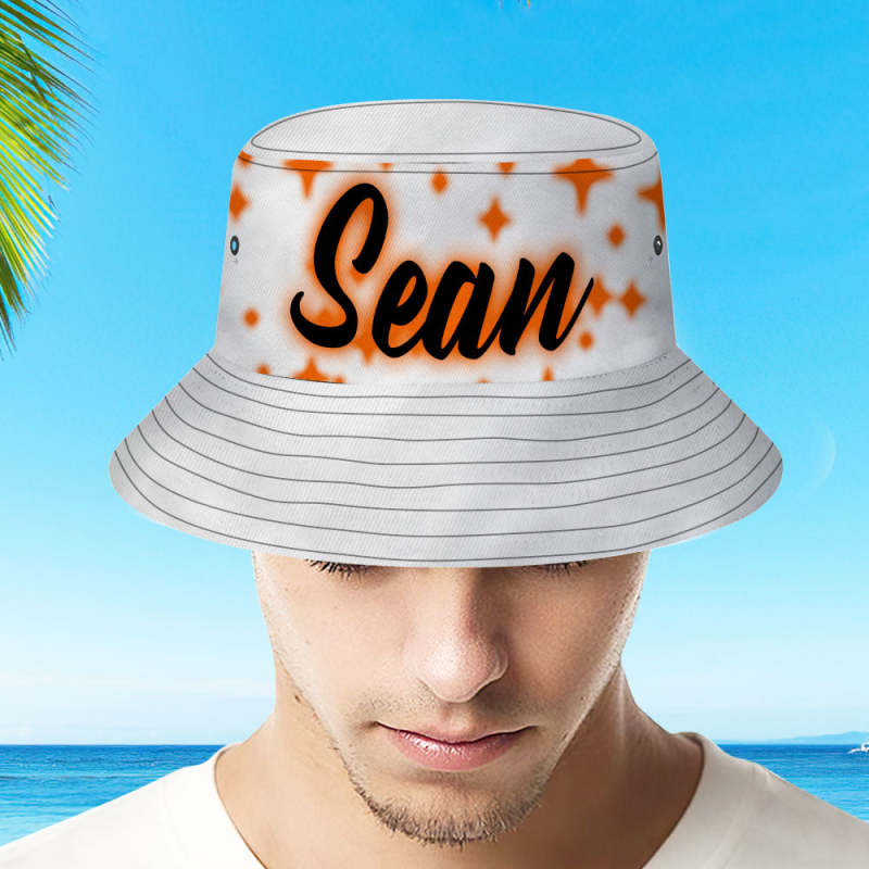 カスタムバケットハット-名入れ可能な男女兼用日よけ帽子プレゼント - オレンジスター