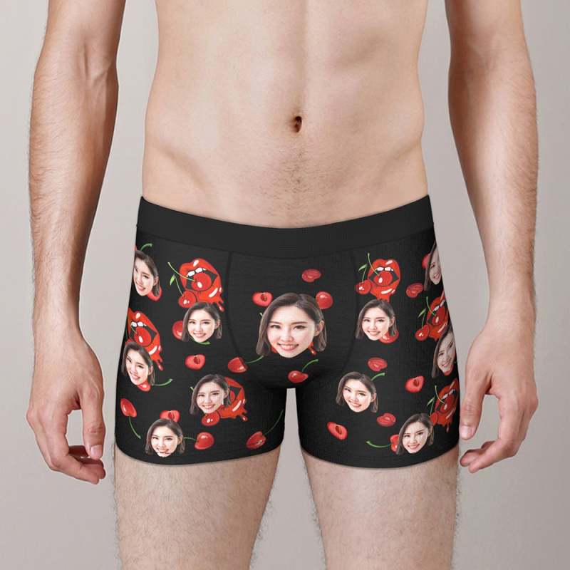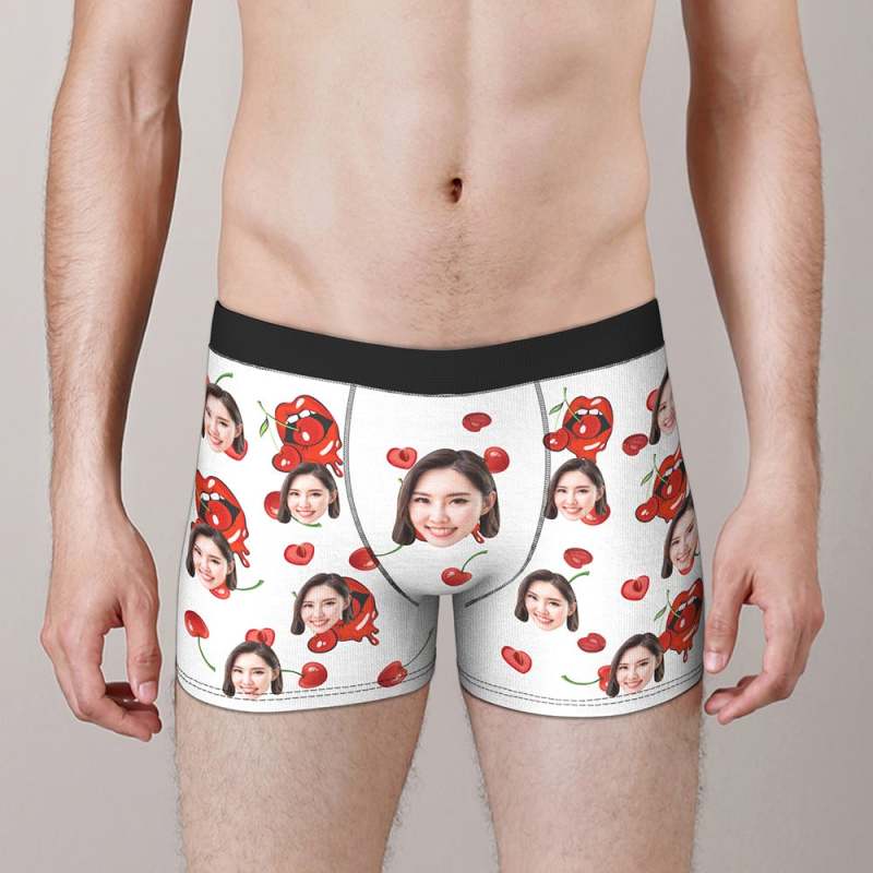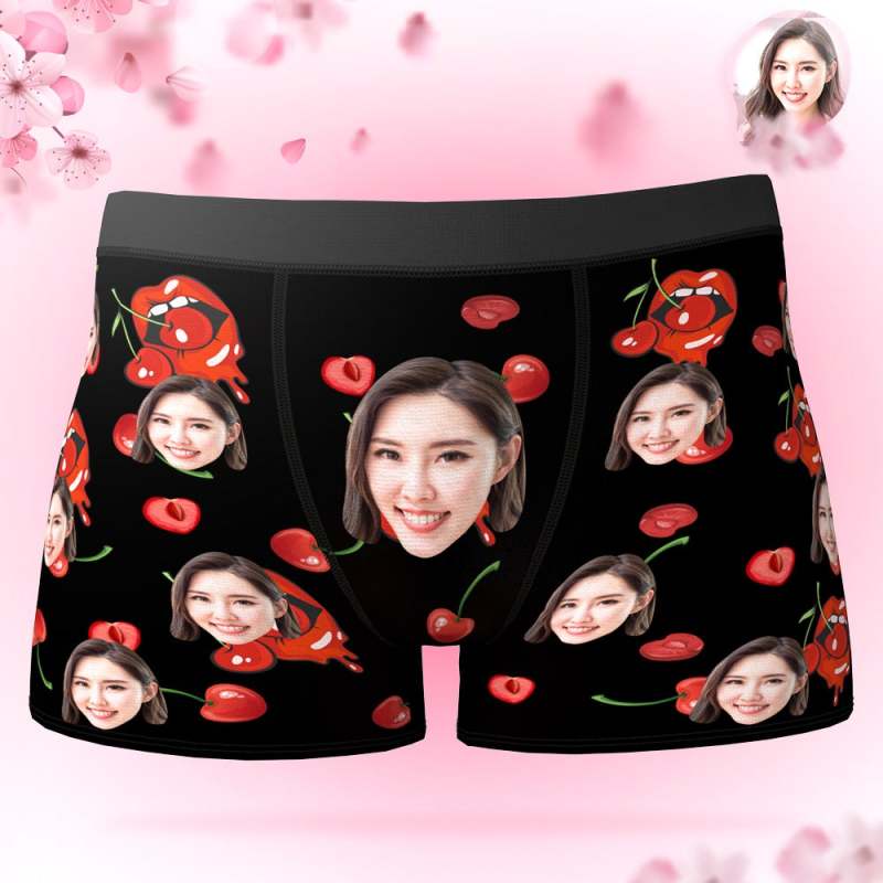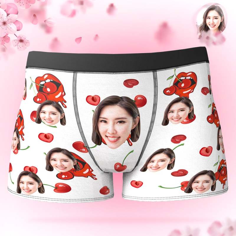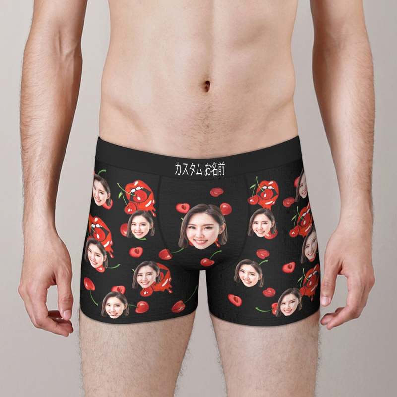 カスタムフォトボクサーパンツ-写真とテキスト入り可能な桜んぼ柄の下着彼氏や旦那へのバレンタインギフト