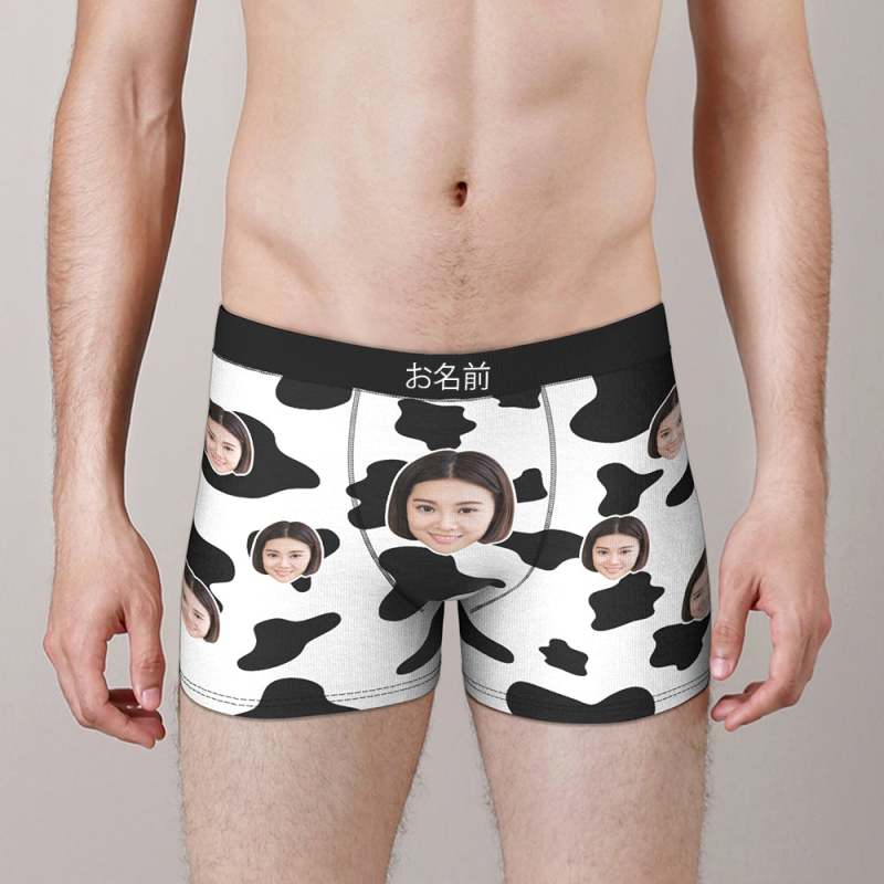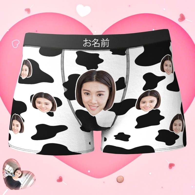カスタムフォトボクサーパンツ-写真や名入れ可能な乳牛柄の下着彼氏や旦那へのバレンタインギフト