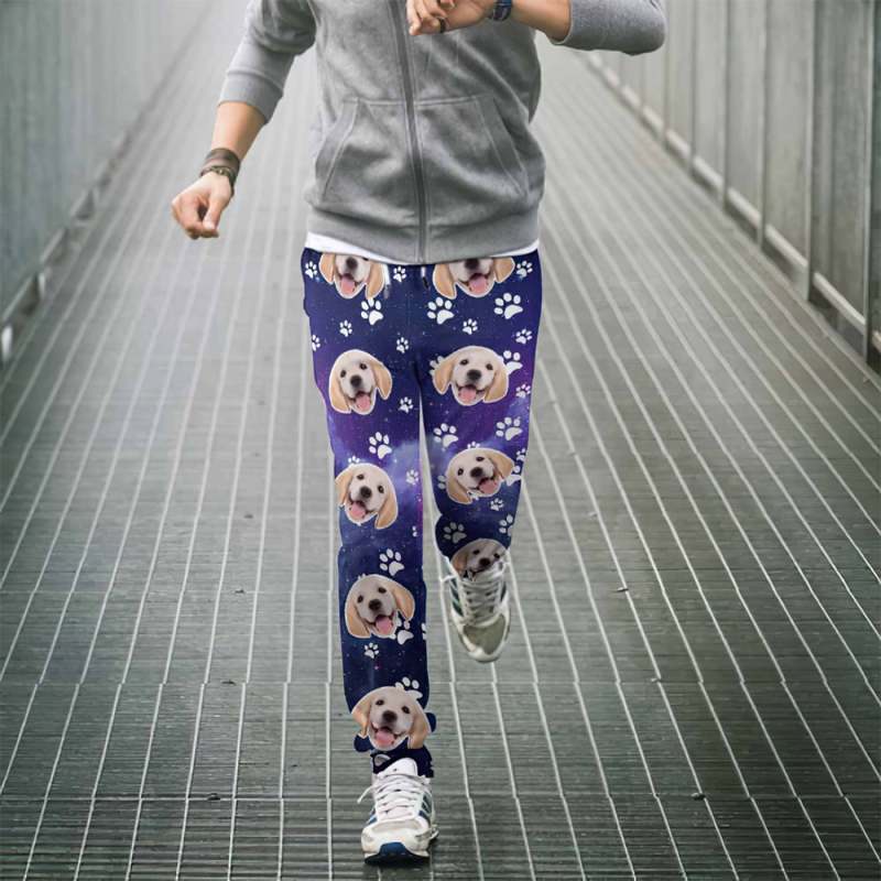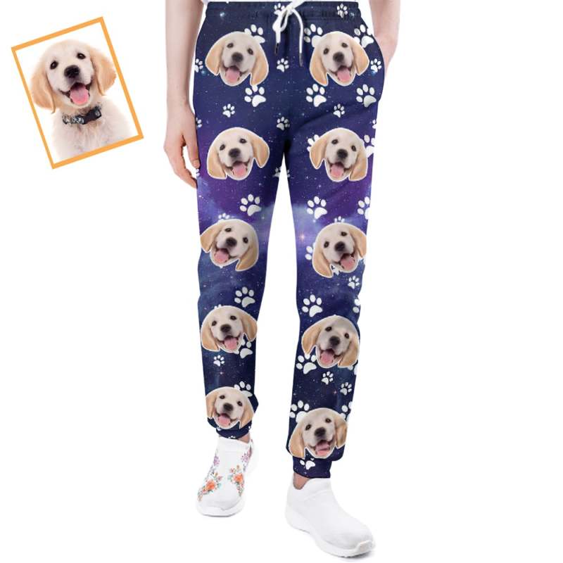 カスタムフェイススウェットパンツ - 犬写真入れ可能な男女兼用ジョガーパンツ - 宇宙柄