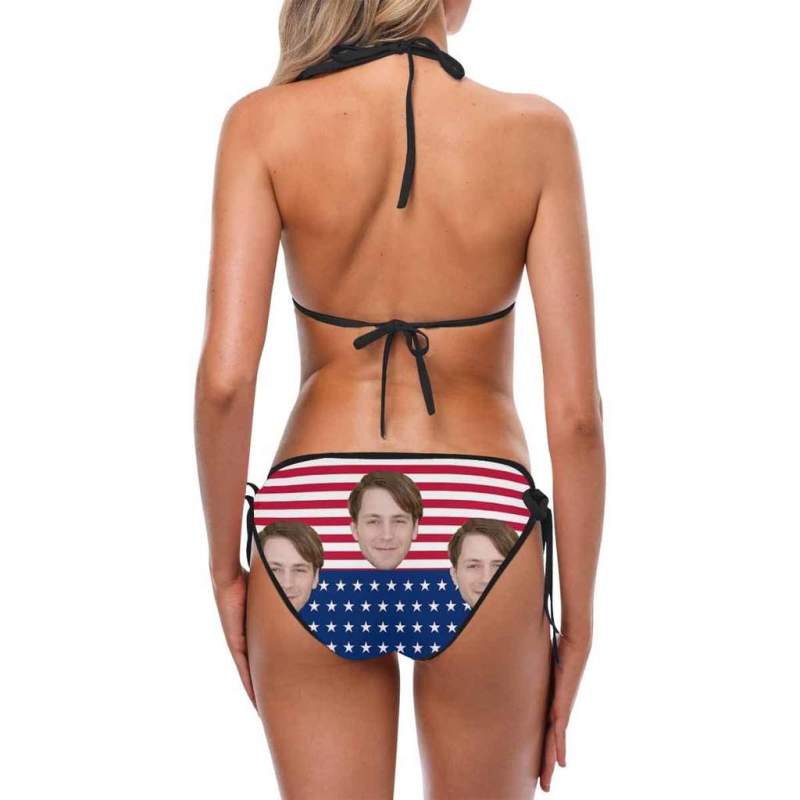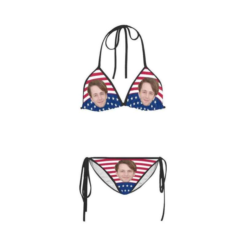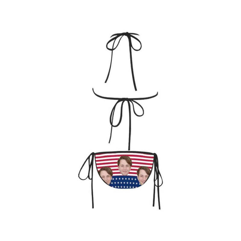 カスタムフェイス水着‐ビキニ女性のセクシーな写真入れ可能なセグメント化された水着-米国旗