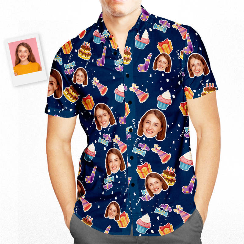 カスタムフェイスアロハシャツ-写真入れ可能な誕生日柄男性のフルプリントアロハシャツ