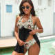 カスタムフェイス水着-写真入れ可能なレディース用花柄のホルターネック体型カバー2点セット