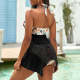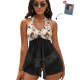 カスタムフェイス水着-写真入れ可能なレディース用花と葉柄のホルターネック体型カバー2点セット