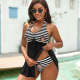 カスタムフェイス水着-写真入れ可能なレディース用しま柄のホルターネック体型カバー2点セット