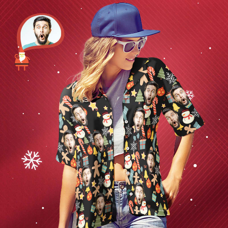 カスタムフェイスハワイアンスタイルシャツ家族コーデ - メリークリスマス