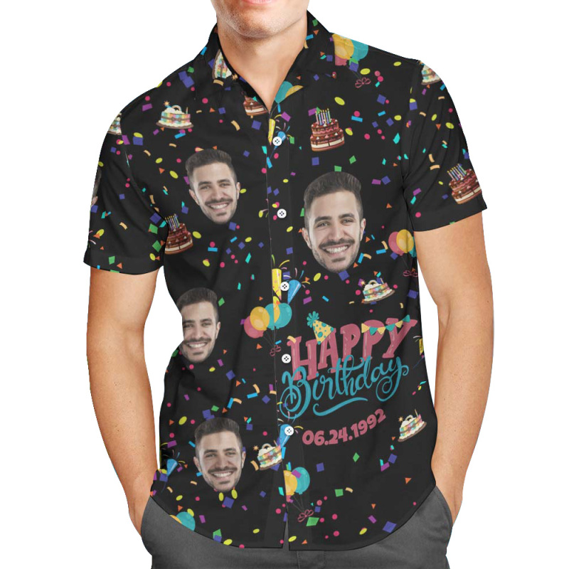 カスタムフェイスアロハシャツ-写真入れ可能な男性全印ユニークな誕生日プレゼント