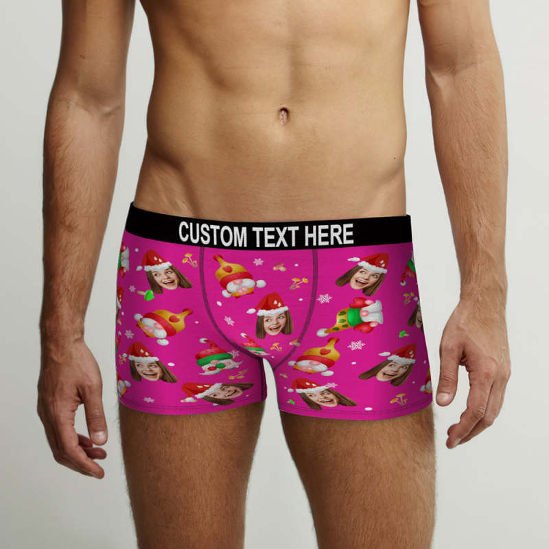 カスタムフォトボクサー-写真入れ可能なハッピーノーム柄のクリスマスピンクのボクサーパンツギフト