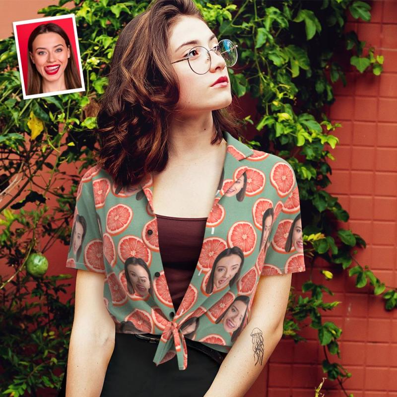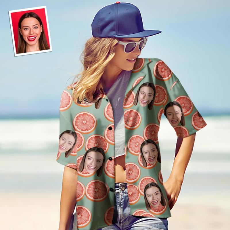 カスタムフェイスシャツ-写真入れ可能な女性用アロハシャツプレゼント-グレープフルーツ