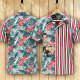 カスタムフォトアロハシャツ-写真入り可能なオリジナル縦縞アロハシャツ-赤い花