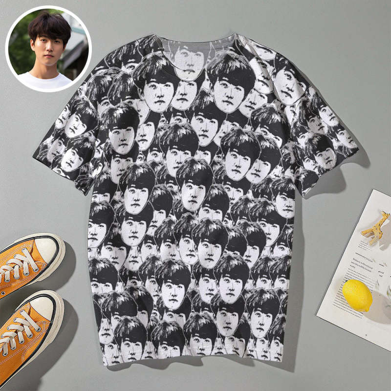 カスタムフォトTシャツ-写真入り可能な面しろい漫画風男女兼用オリジナルTシャフェイスマッシュプレゼント