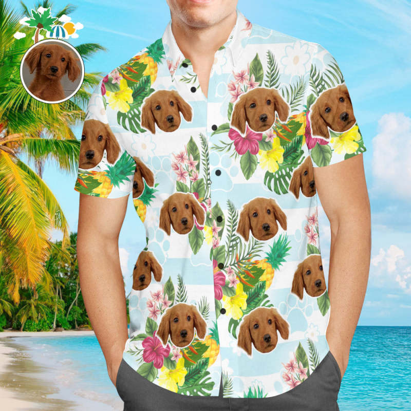 カスタムフェイスハワイアンシャツ - 写真入れ可能なオリジナルアロハシャツ - 犬のあしあと柄