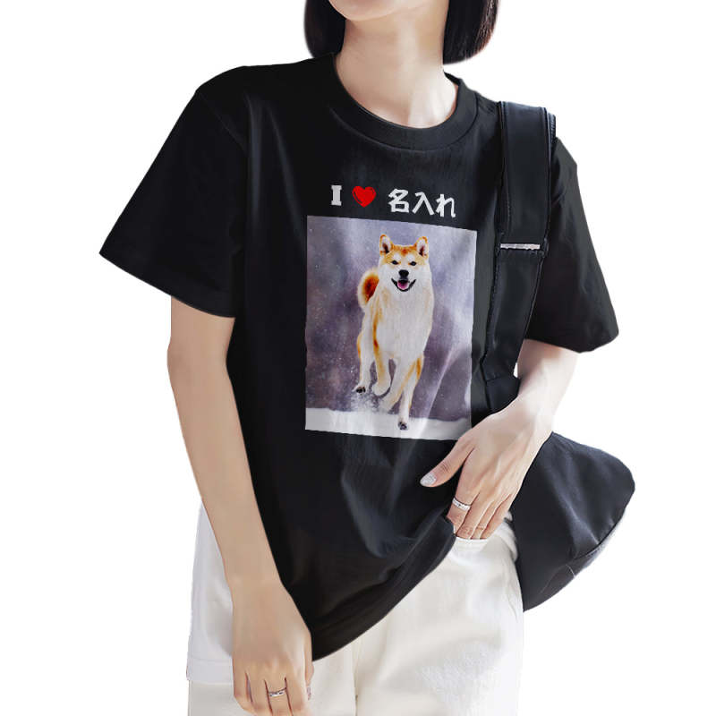 カスタムフォトTシャツ - 写真と名前入れ可能なペット写真T-SHIRTプレゼントI♥○○