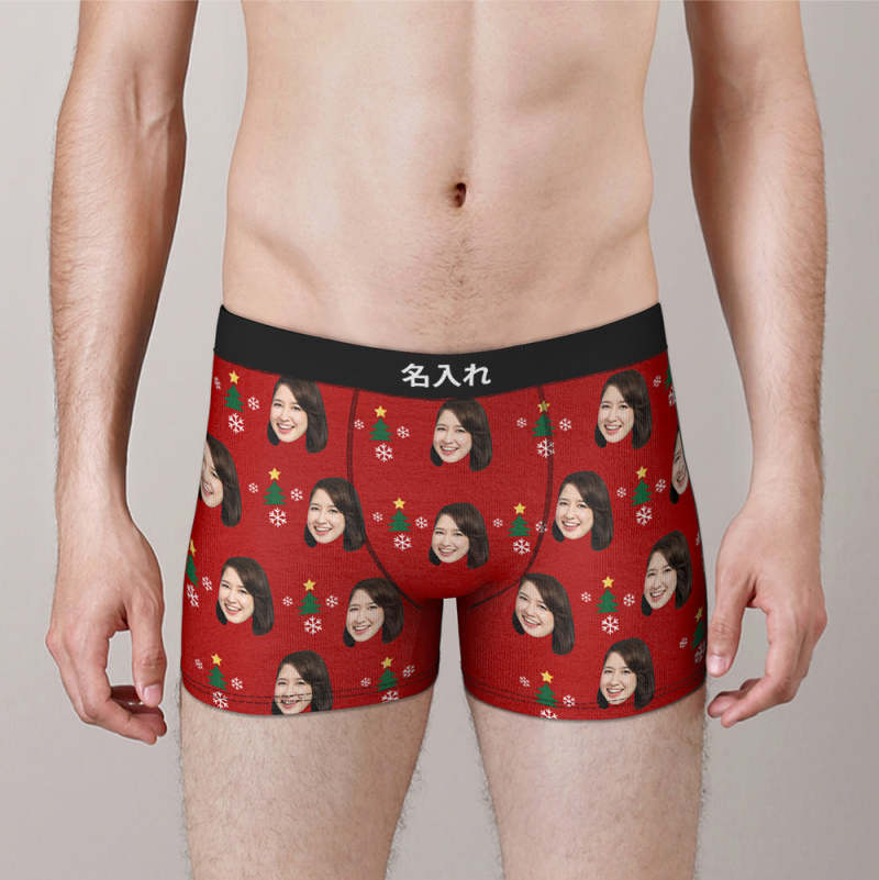 カスタムフォトボクサーパンツ-写真入れ可能なオリジナルクリスマス顔下着ショーツギフト-クリスマスツリ—
