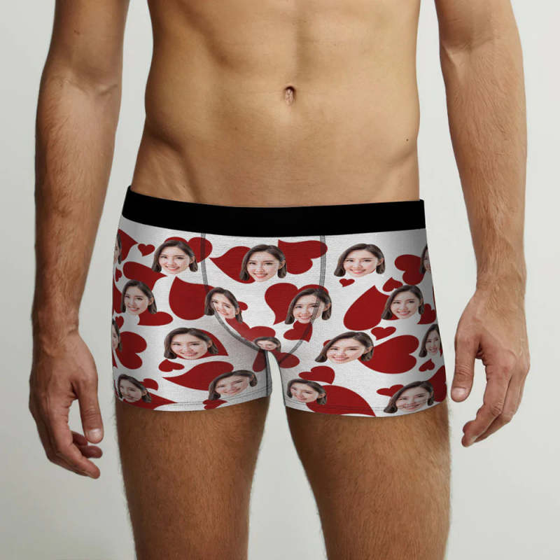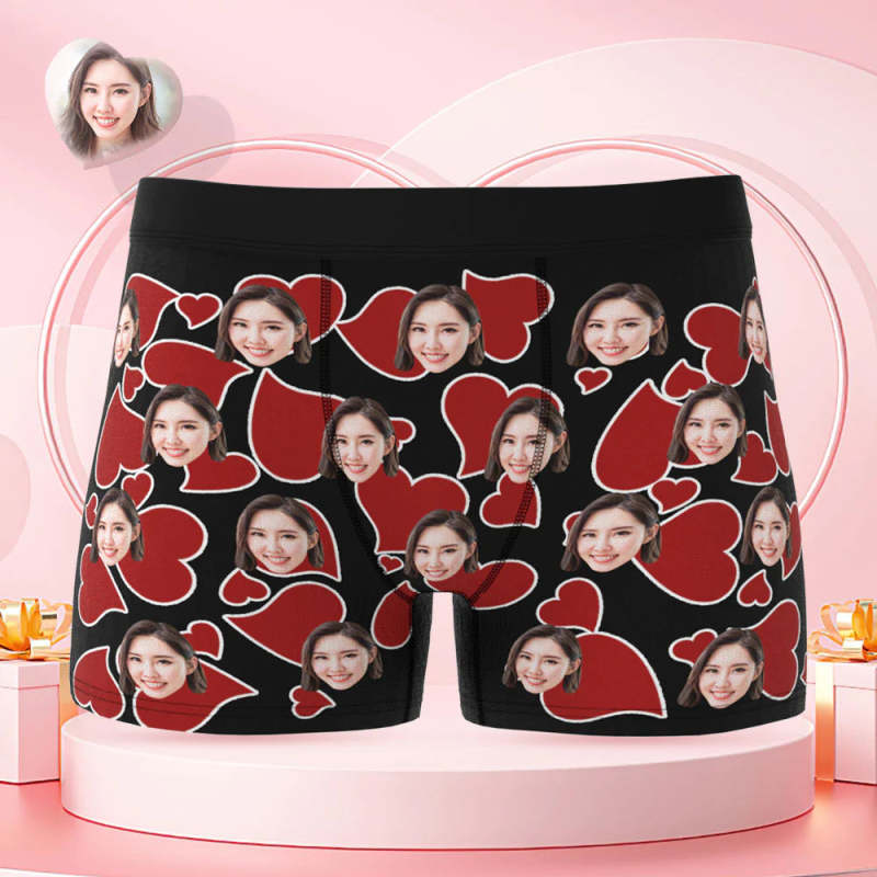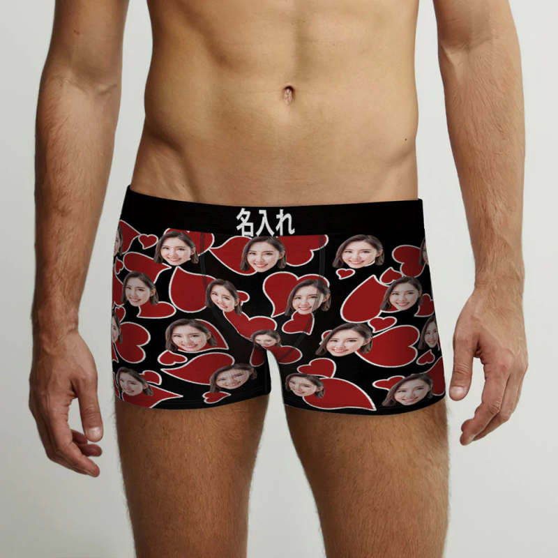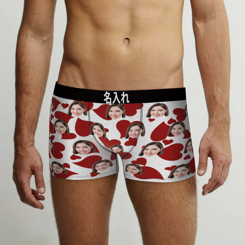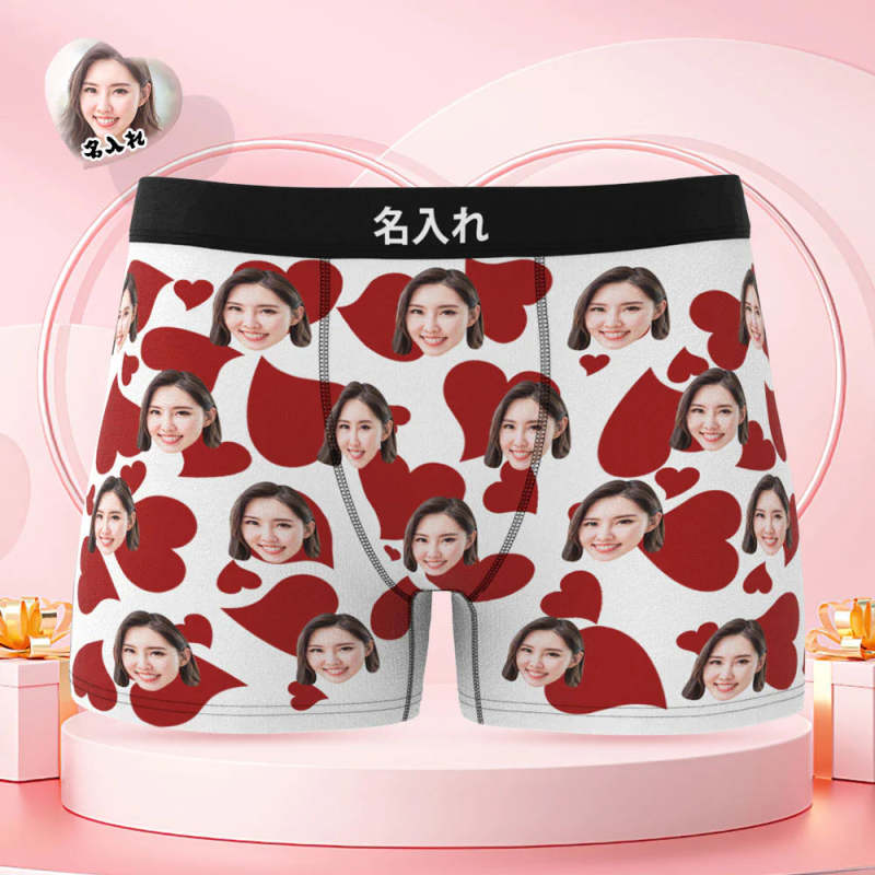 カスタムフォトボクサーパンツ-写真入れ可能なオリジナルバレンタイン顔下着ショーツギフト-ハートだらけ