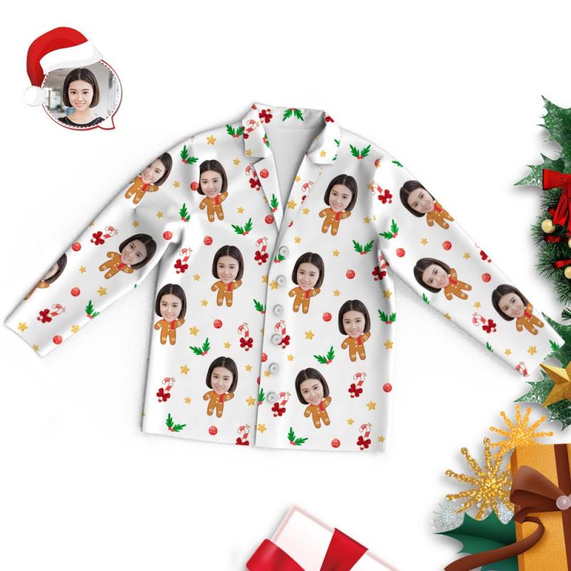 カスタムフォトパジャマ-写真入り可能なオリジナルクリスマスパジャマ-ジンジャーブレッド人