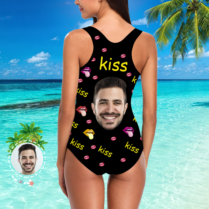 カスタム顔写真レディースワンピースセクシーな水着‐キス柄の夏服