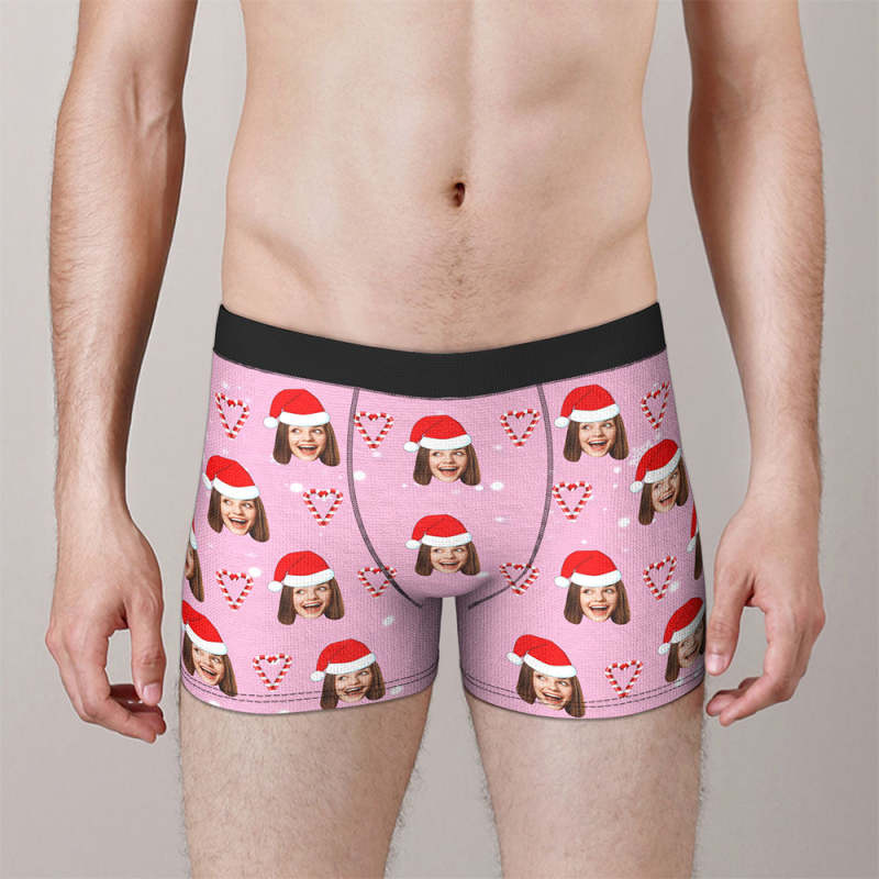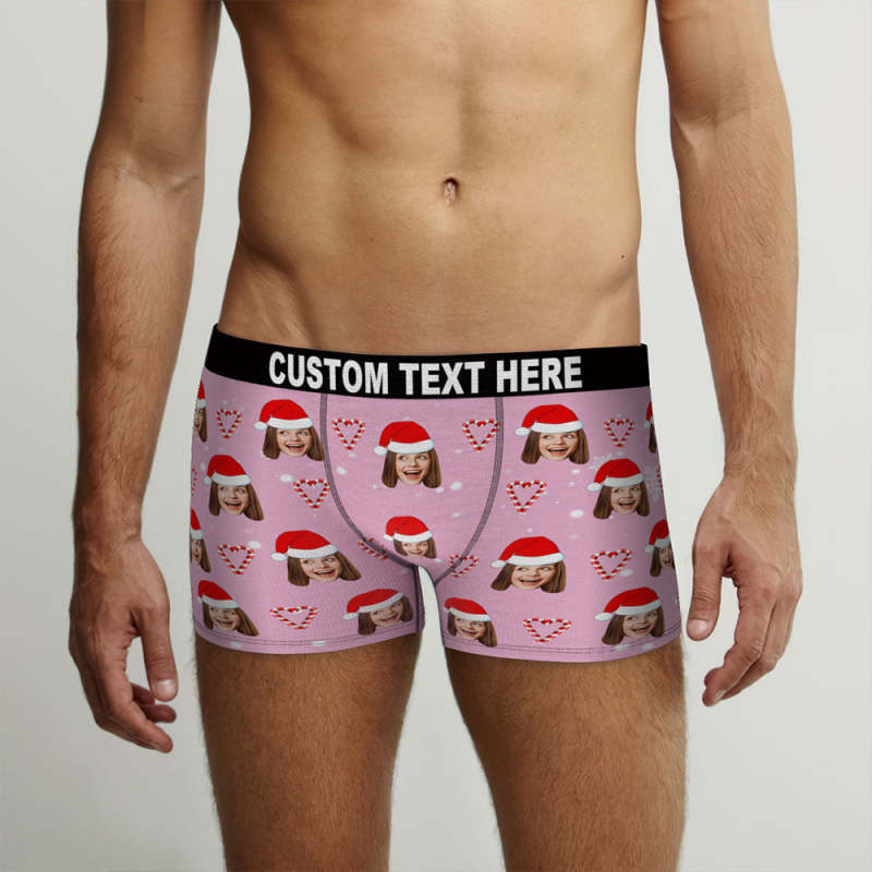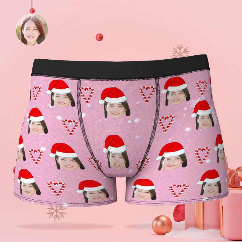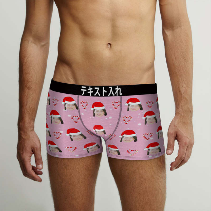カスタムフォトボクサー-イギリスパンデミックの写真入れ可能なキャンディ柄のピンクのクリスマスボクサーパンツギフト