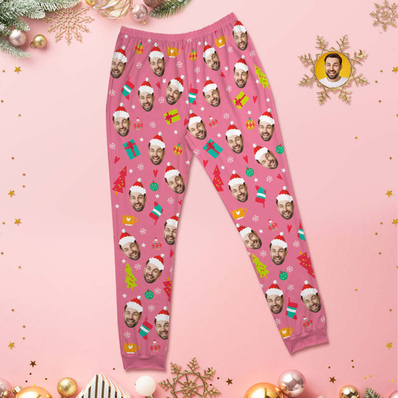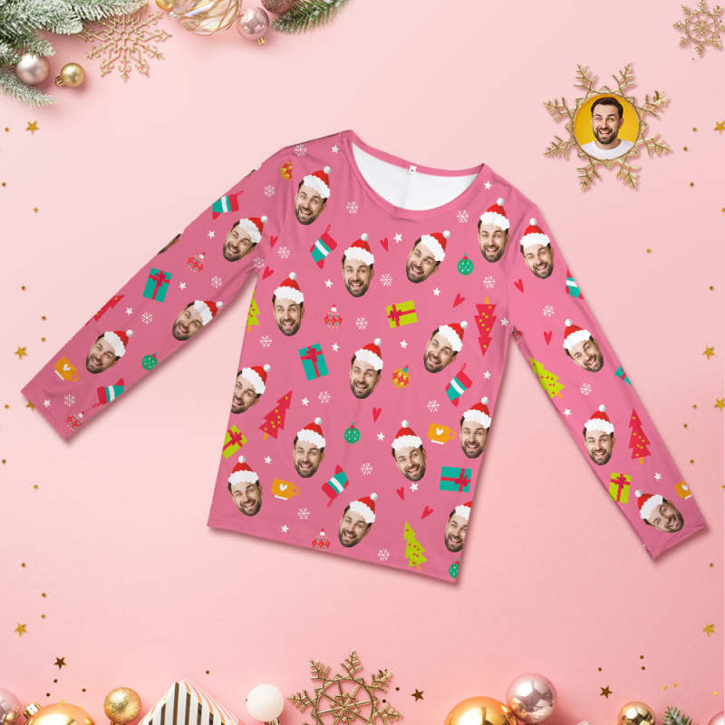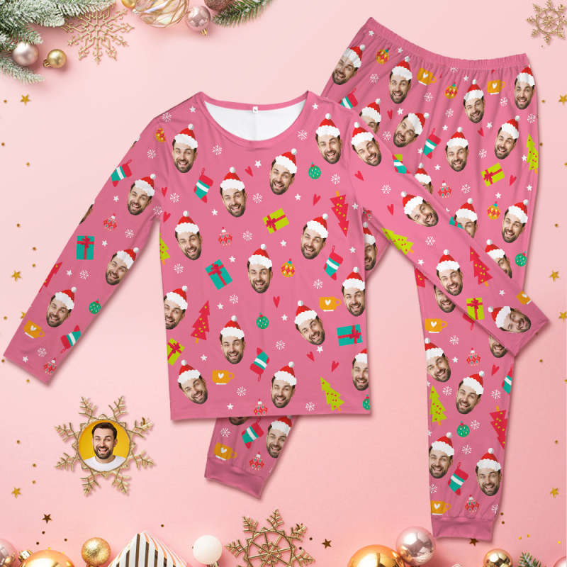 カスタムフォトパジャマ-イギリスパンデミックの写真入れ可能なピンクのクリスマスおもしろ丸襟パジャマギフト