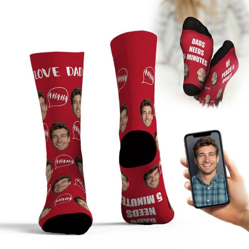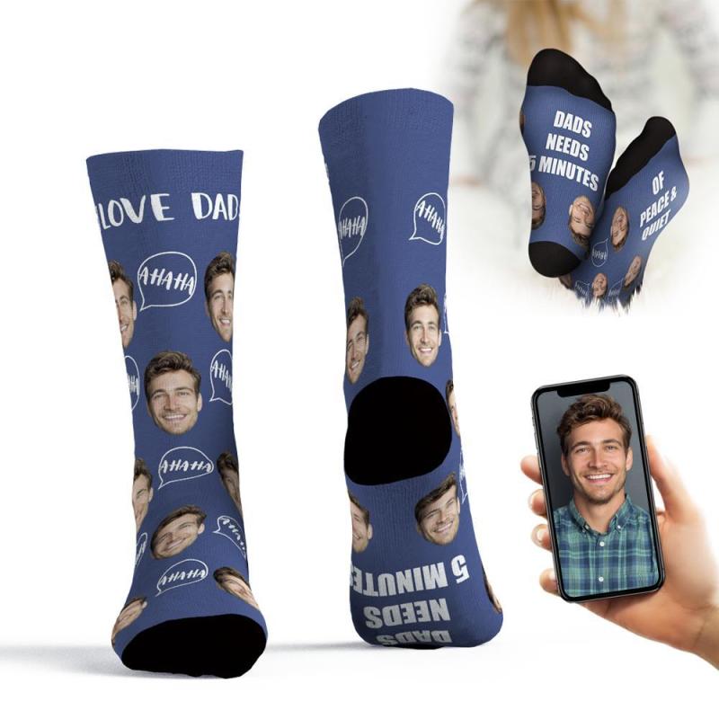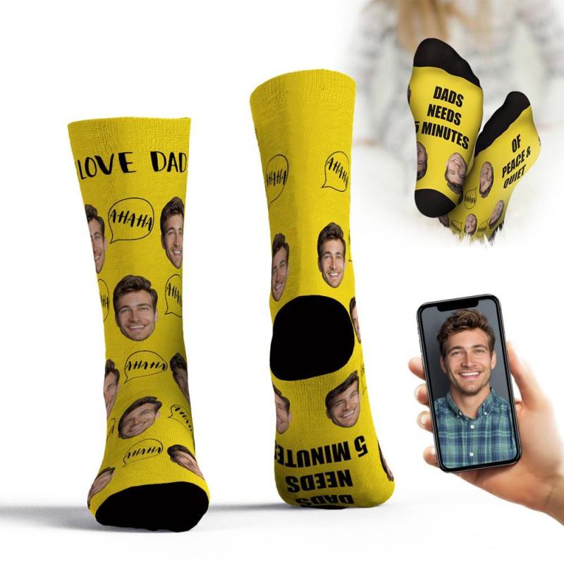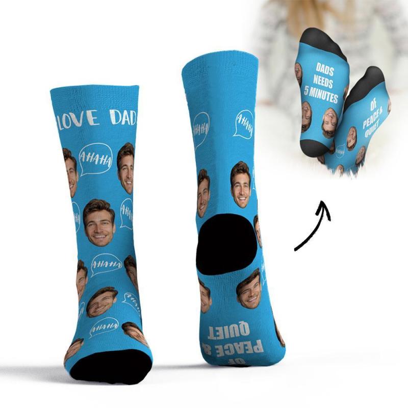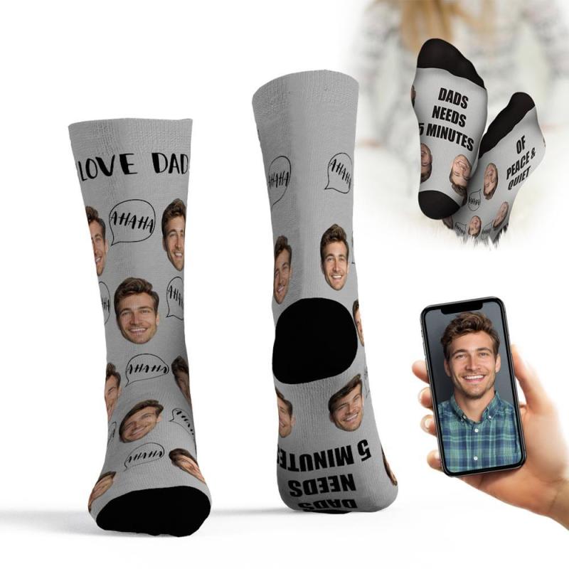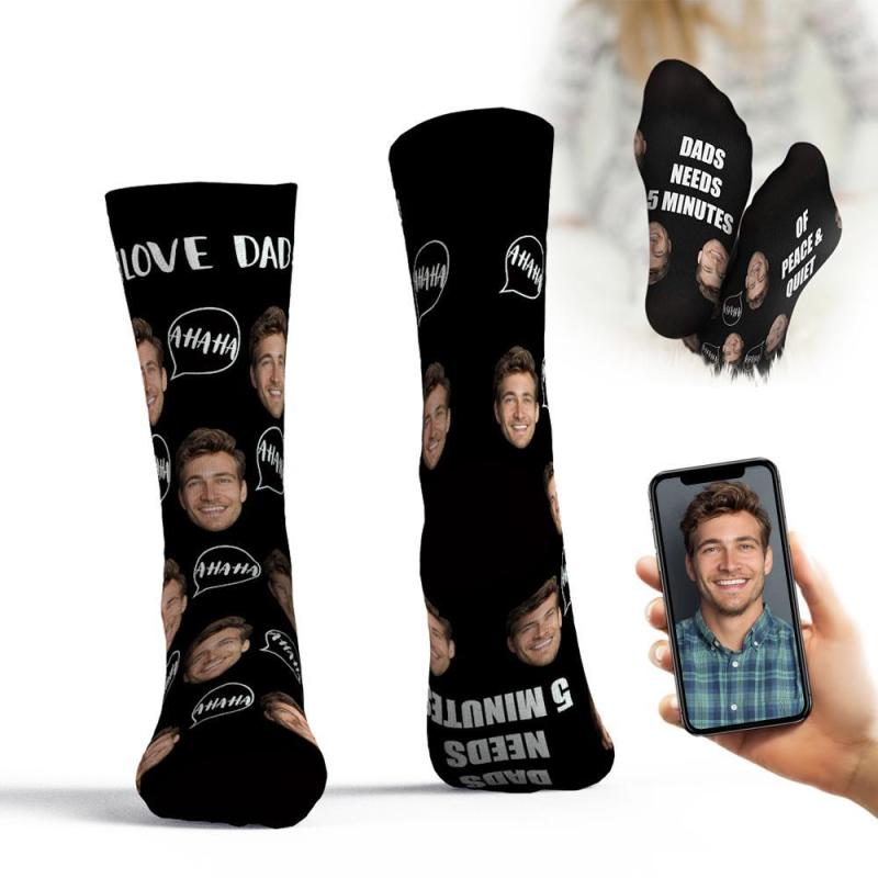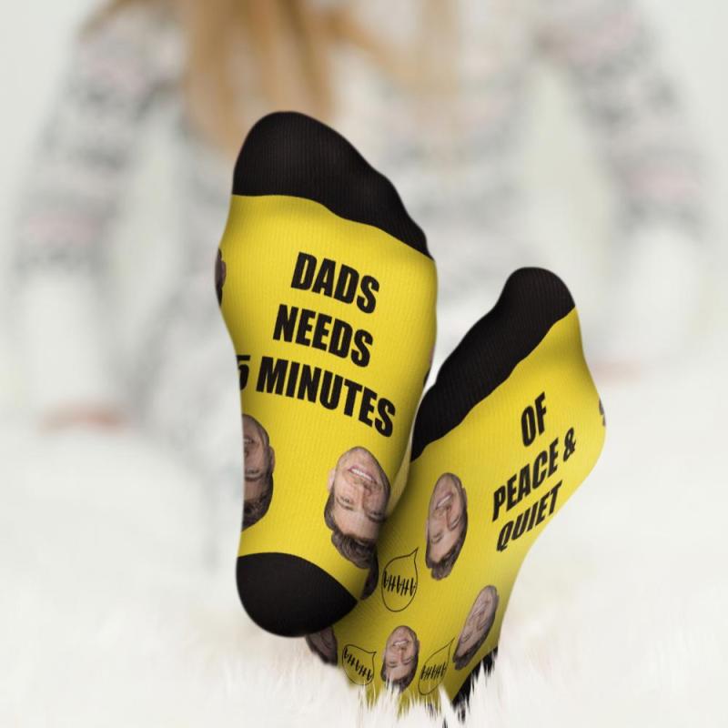 父の日ギフト写真入り名入りカスタムフェイスソックス - お父さんは5分間の平和と静けさを必要とします