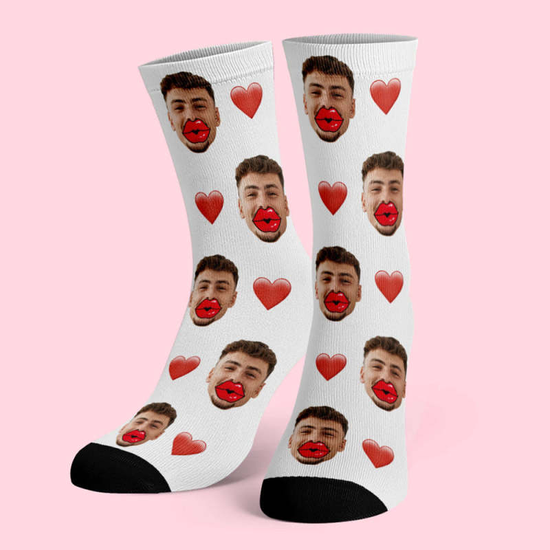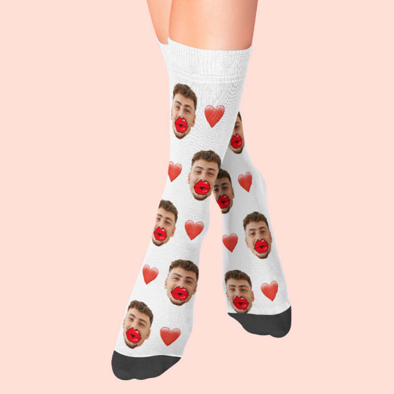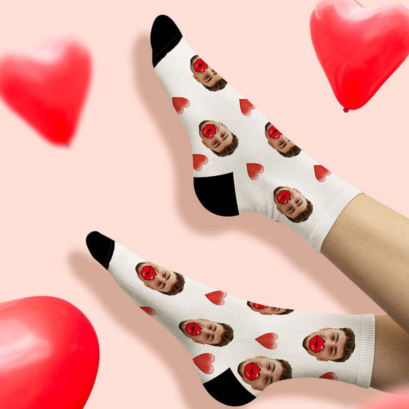 カスタムフェイスソックス-写真入れ可能な赤い唇とハート柄の面しろ靴下バレンタインデーギフト