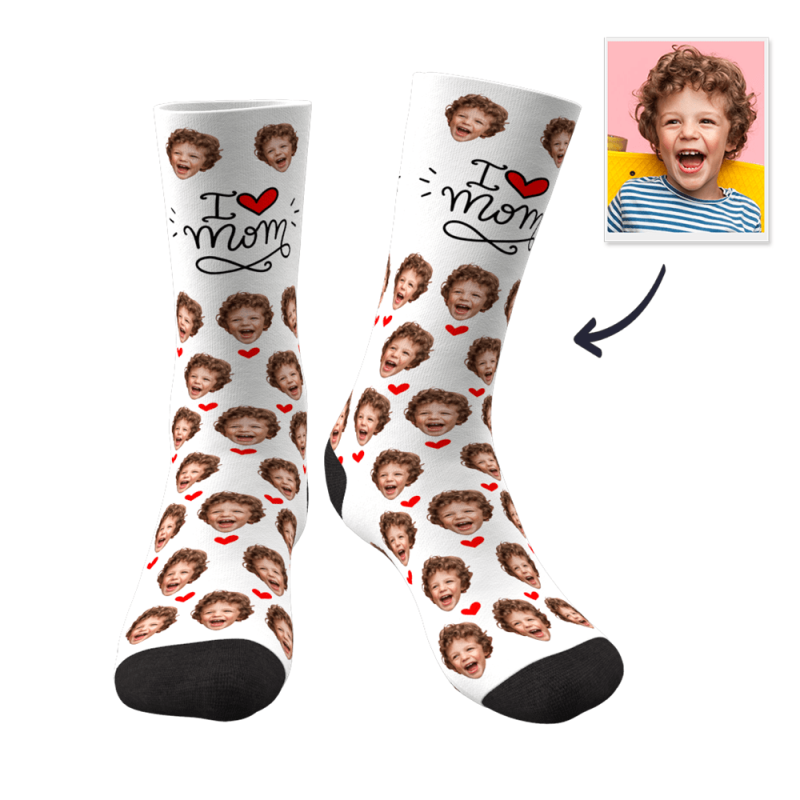 カスタムフェイスソックスハート私はお母さんが大好きお母さんへの最高の贈り物