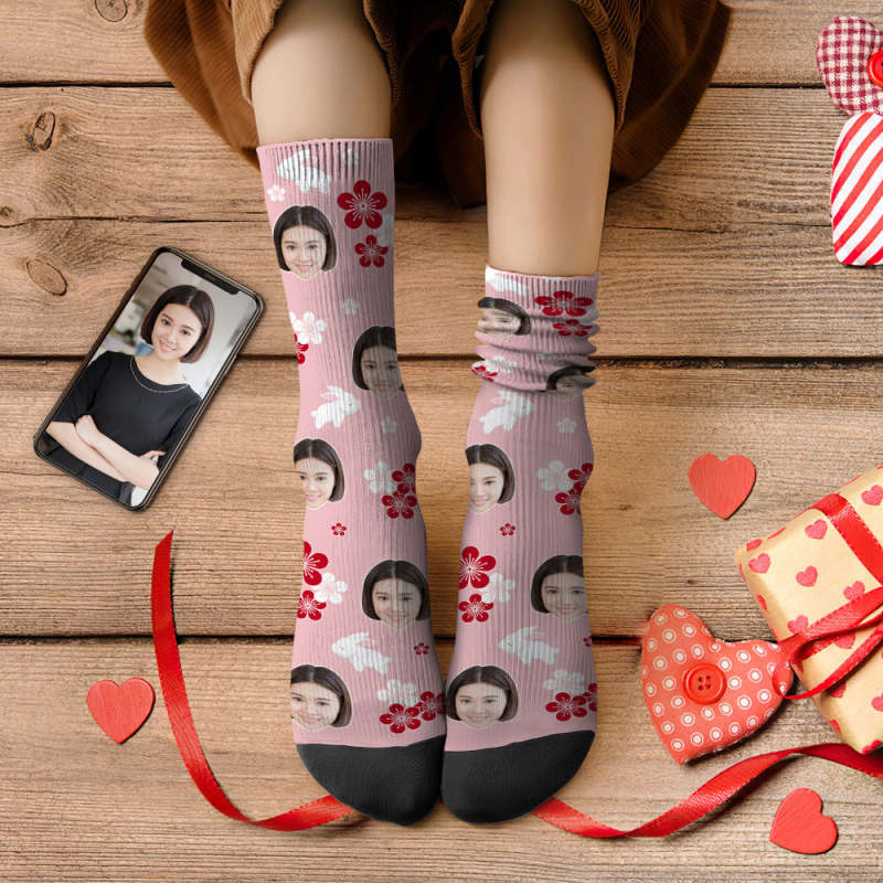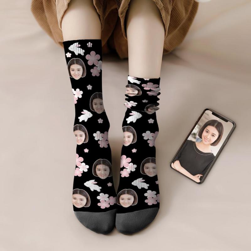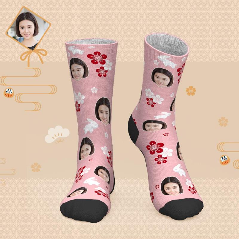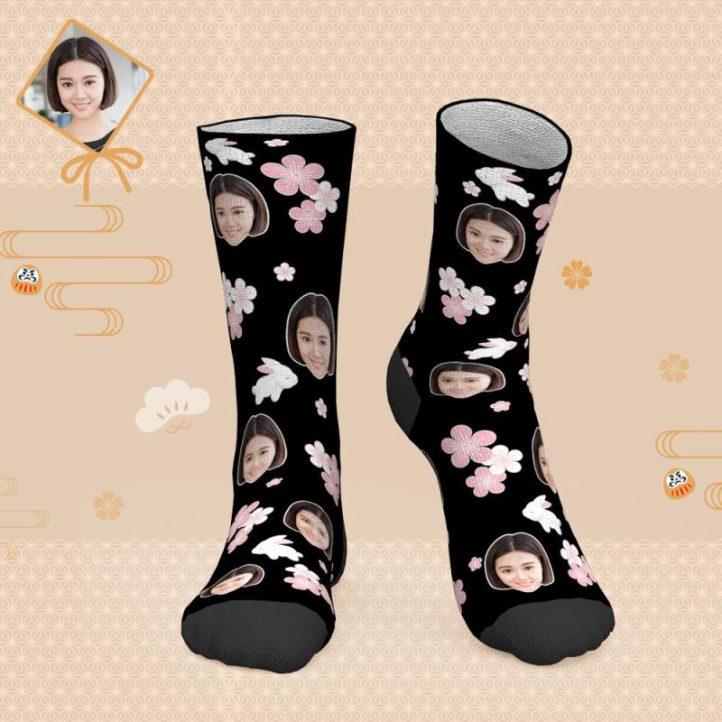 カスタムフェイスソックス-写真入り可能なオリジナル靴下-桜の花と兎
