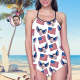 カスタムフェイス水着‐レディースフォトサスペンダーワンピース型水着-白頭ワシとアメリカ国旗