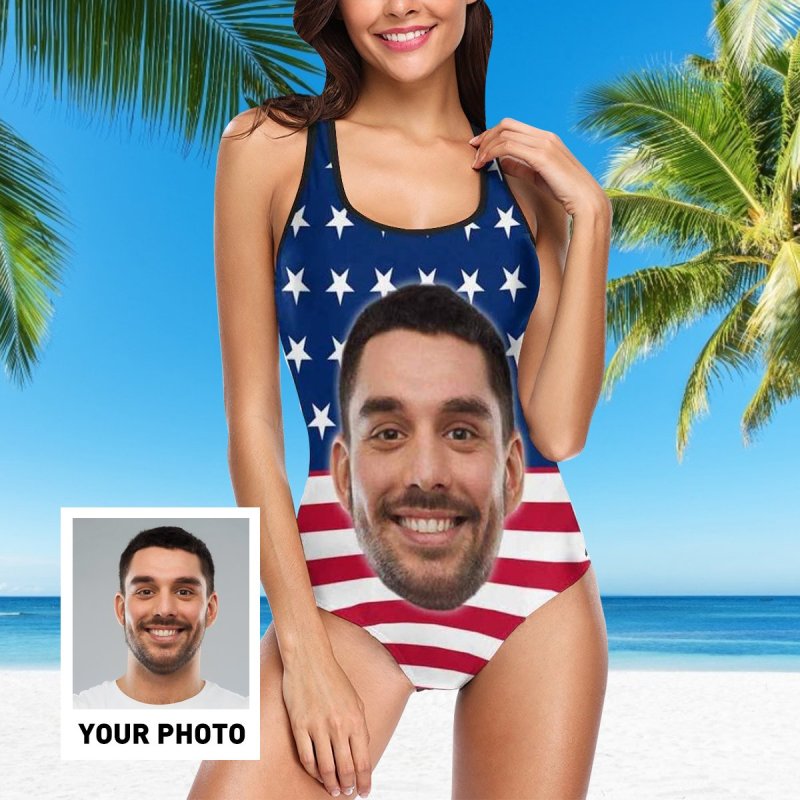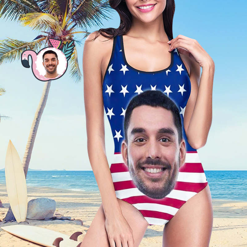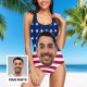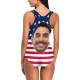 カスタムフェイス水着‐レディースフォトサスペンダーワンピースタンクトップ水着-アメリカ国旗