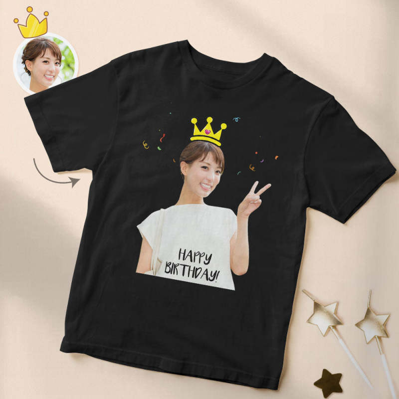 カスタムフォト誕生日Tシャツ - 写真入れ可能な写真T-SHIRTプレゼント - 王冠柄の誕生日プレゼント
