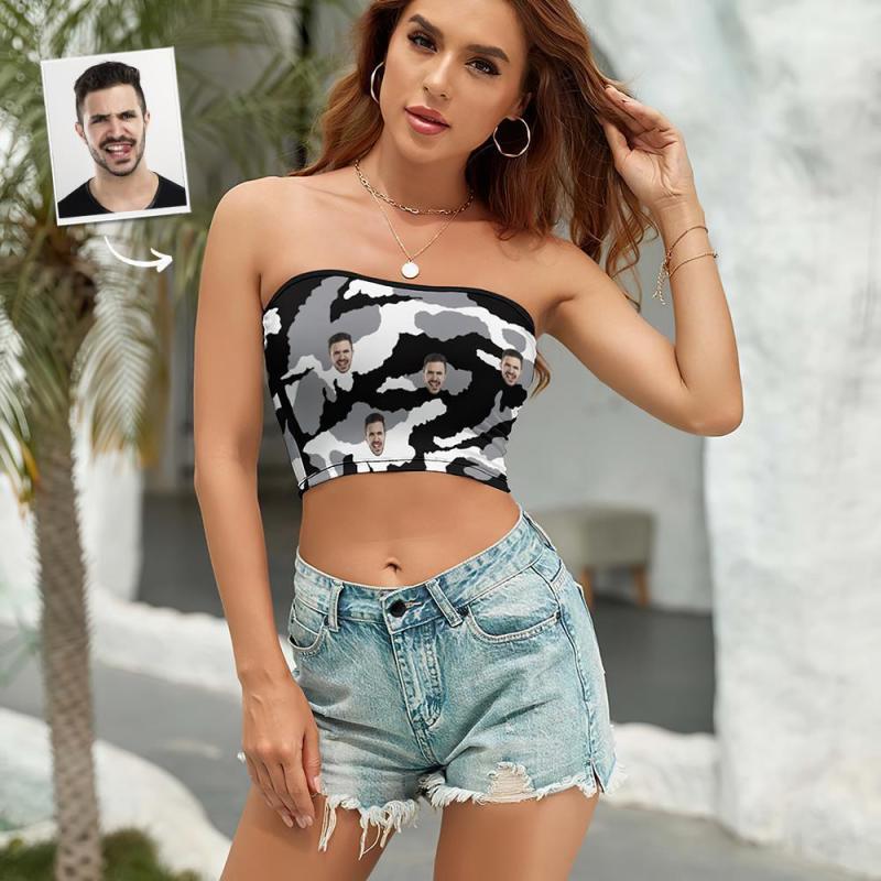 カスタム写真レディースストラップレスブラセクシーなチューブトップ-ビーチパーティーにぴったり-迷彩