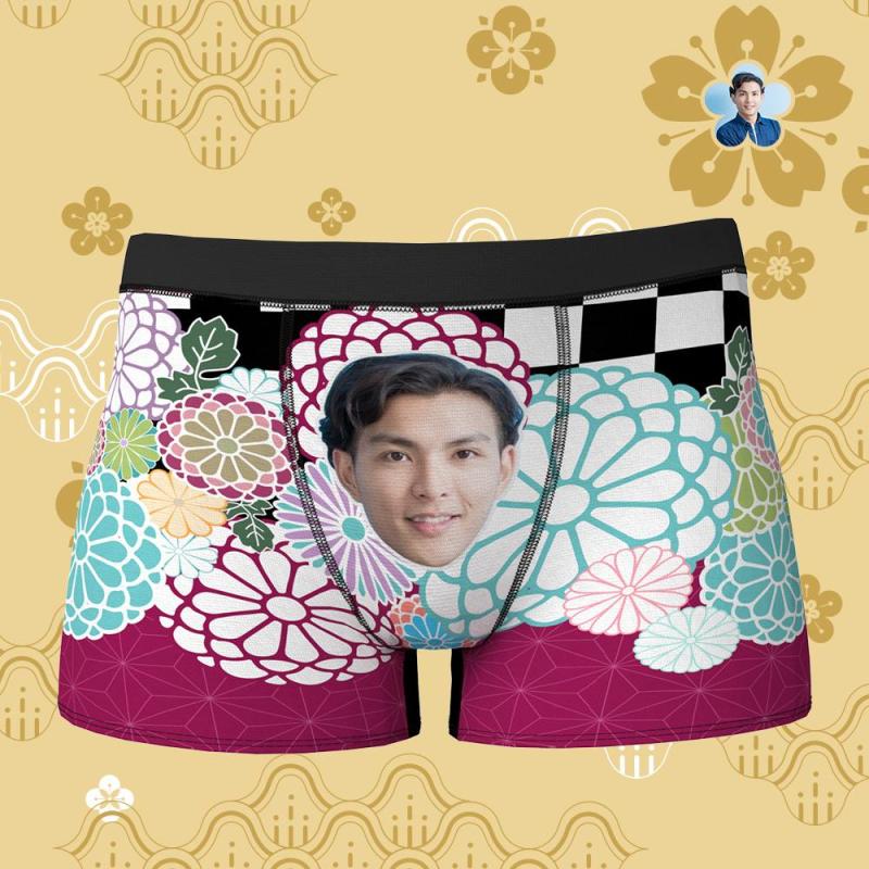 カスタムフォトボクサーパンツ-写真入り可能な花柄下着父さんや彼氏への新年のプレゼント