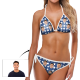 カスタムフェイス写真入れ可能な白い星柄の青いビキニセクシーなスーツ